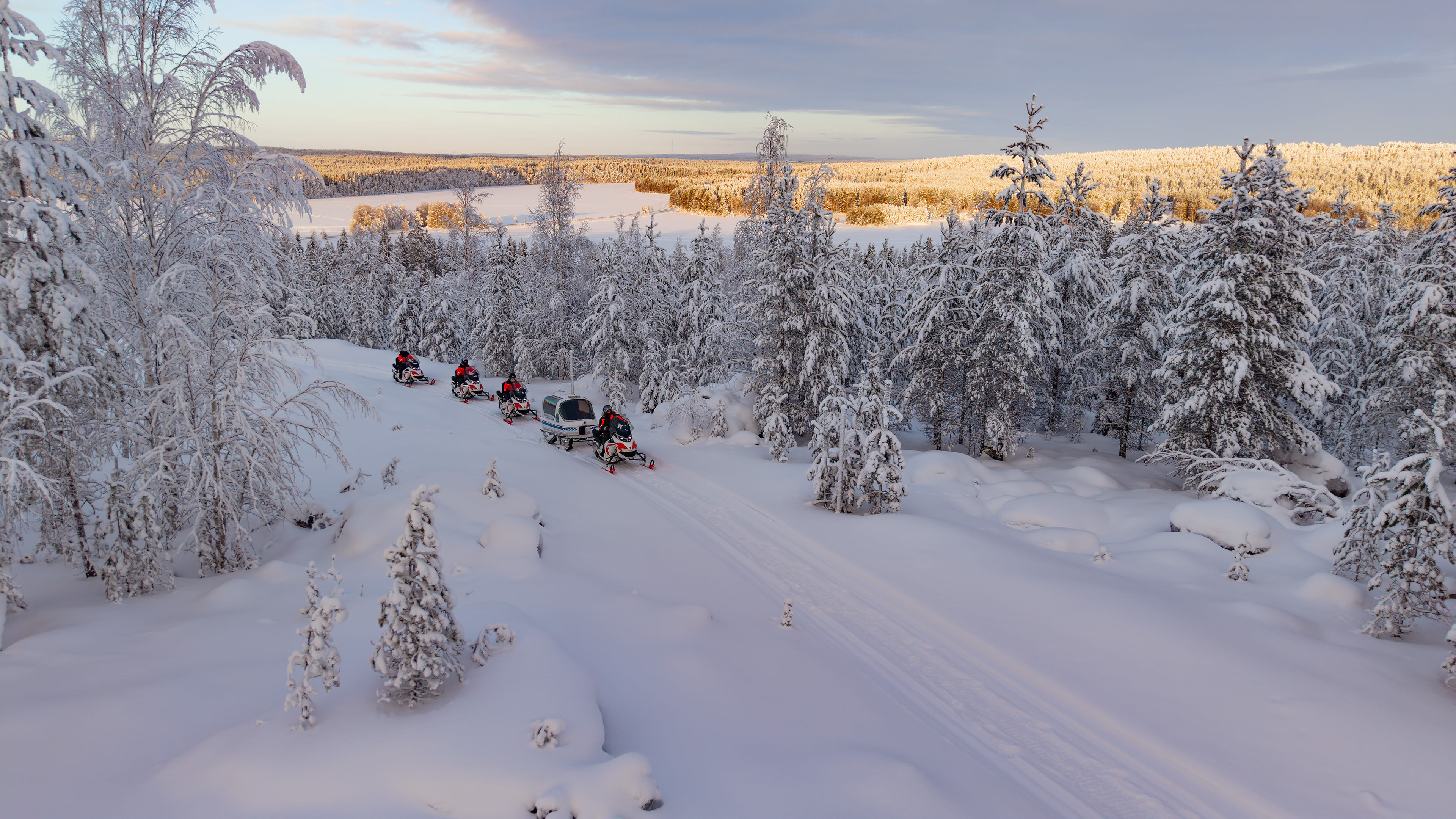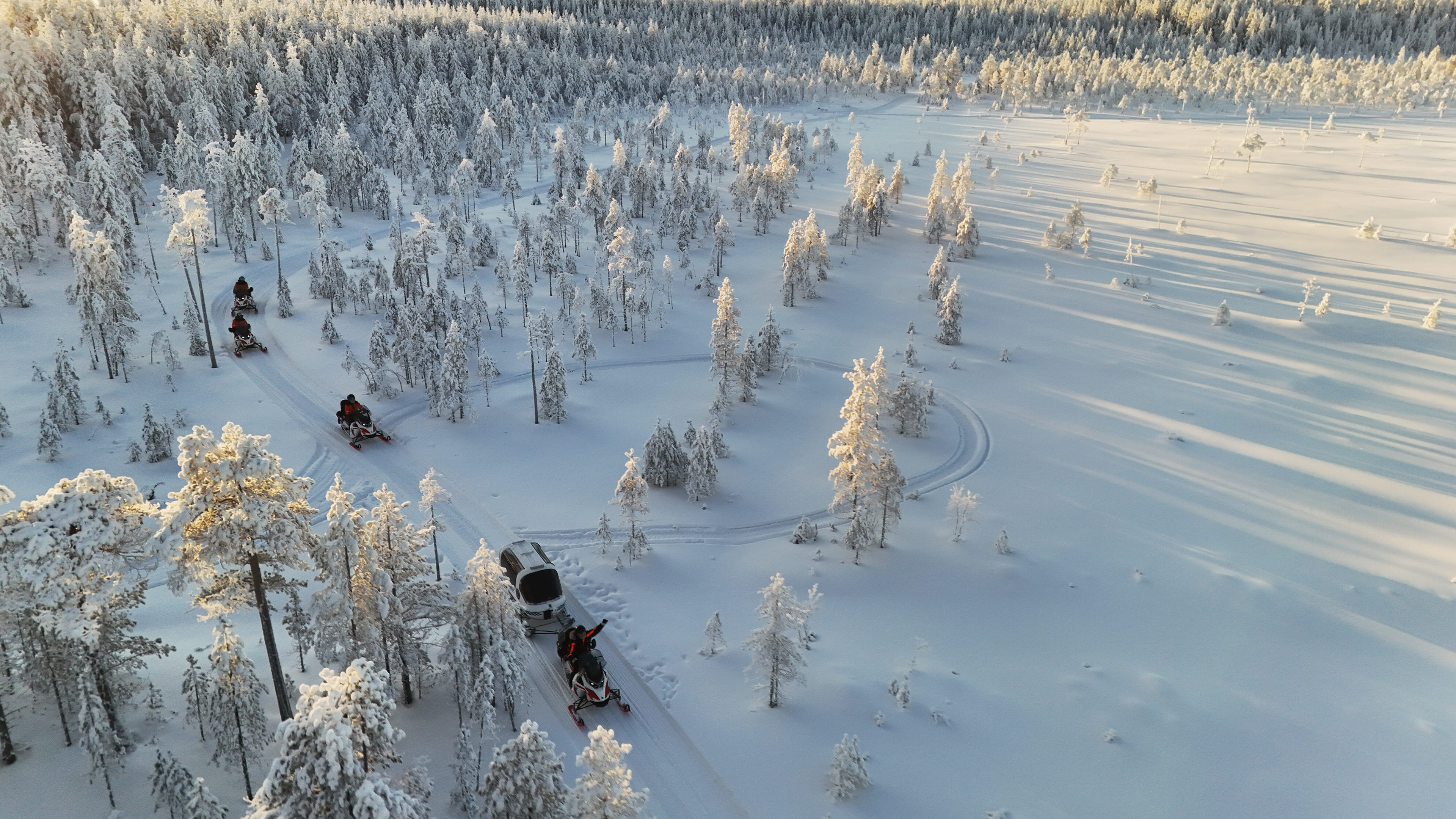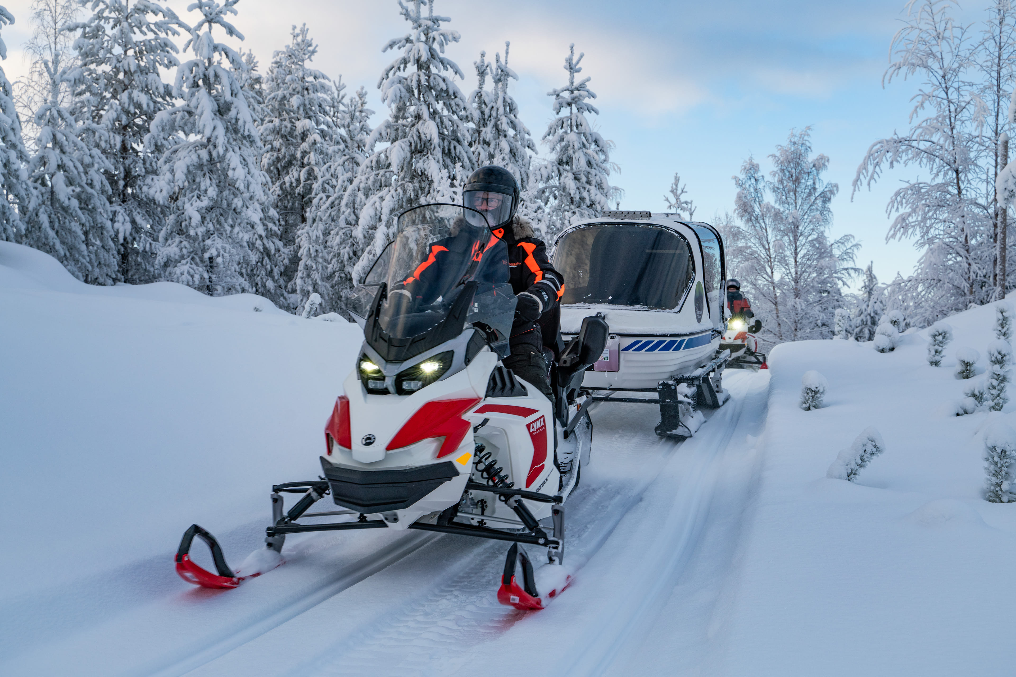 Go and admire the snowy forests of Porovaara on an electric snowmobile! On a silent and peaceful electric snowmobile safari you will get closer to nature and forest animals.