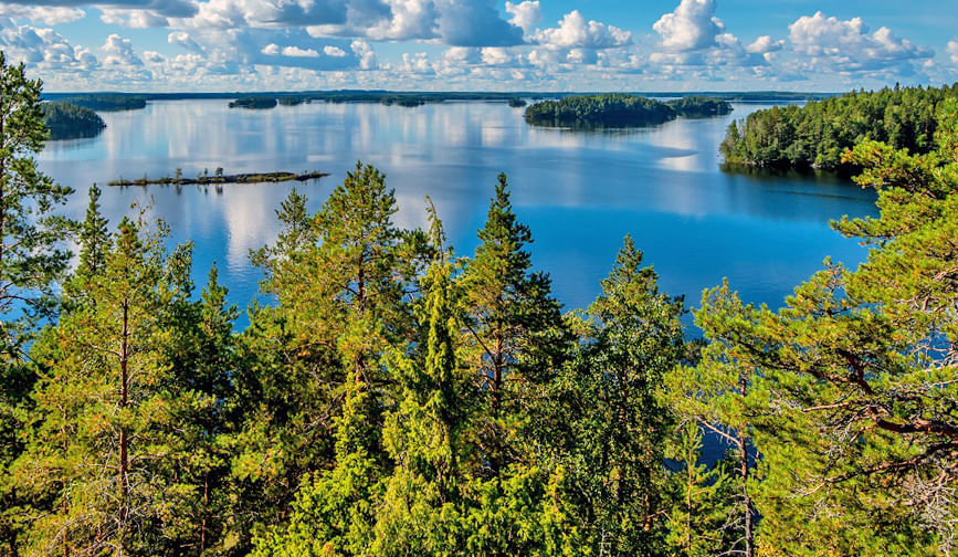 A boat safari through the Linnansaari National Park with a stop and climbing up the Linnanvuori hill.