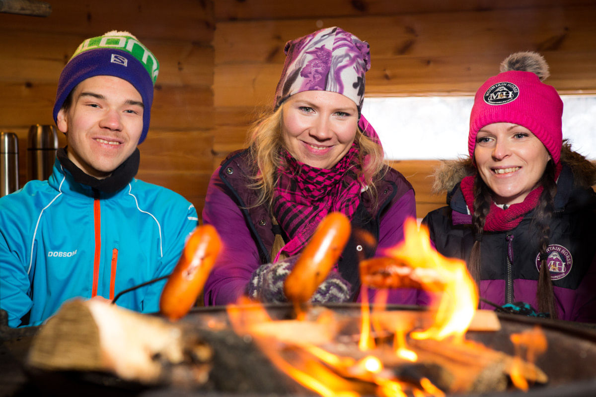 In the evening you can have a sauna and cool-off in the snow. You also get to know typical Finnish homemade delicacies and after a good night sleep you are fit to ski again. The food is local and we also often use organic products!
