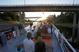 Three canal boat cruise goes through Keitele lake district. The Keitele canal links lakes Päijänne and Keitele via numerous small lakes and sets of locks. The journey also takes in the famous rock paintings at Saraakallio, and features not only great rural scenery but also some narrow navigation passages. Cruise goes through three locks, which are Vaajakoski, Kuhankoski and Kuusaa.