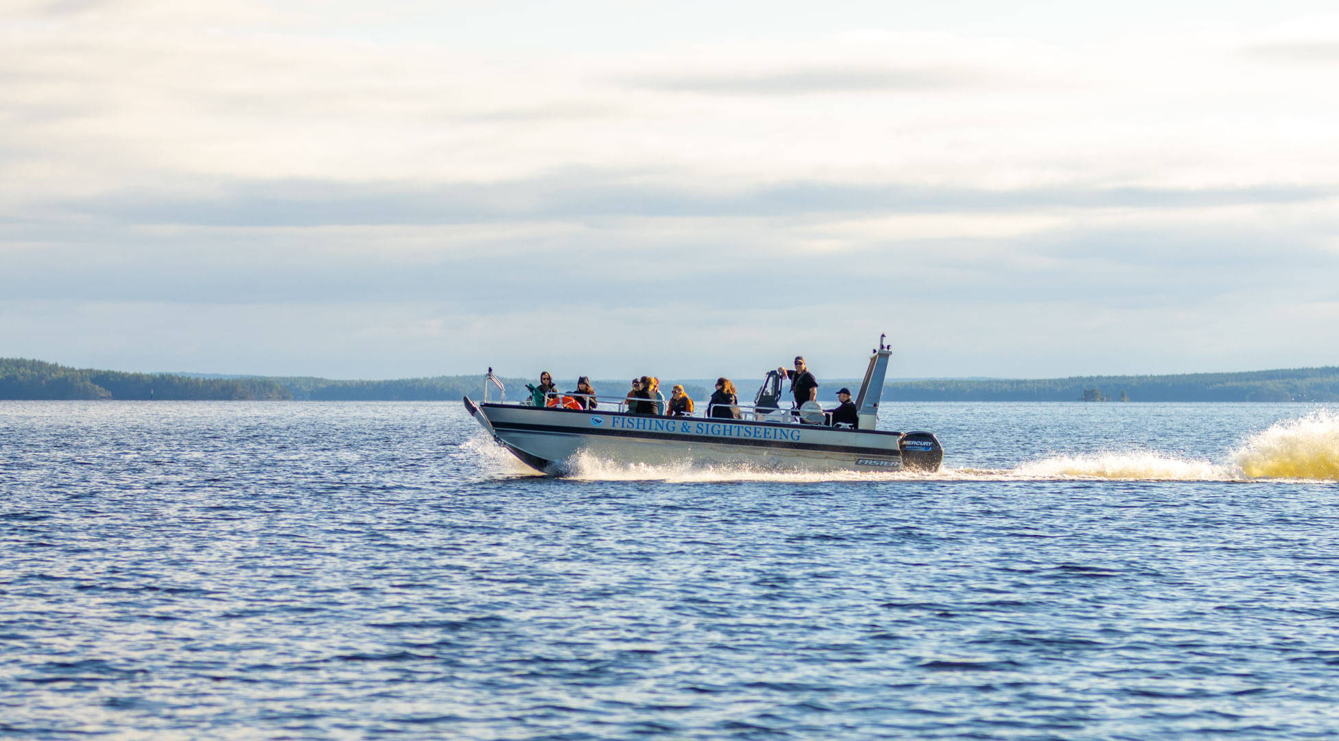 Basic outdoor gear suitable for the weather. The boat is an open boat. From the reception in Oravi you can borrow extra clothes.