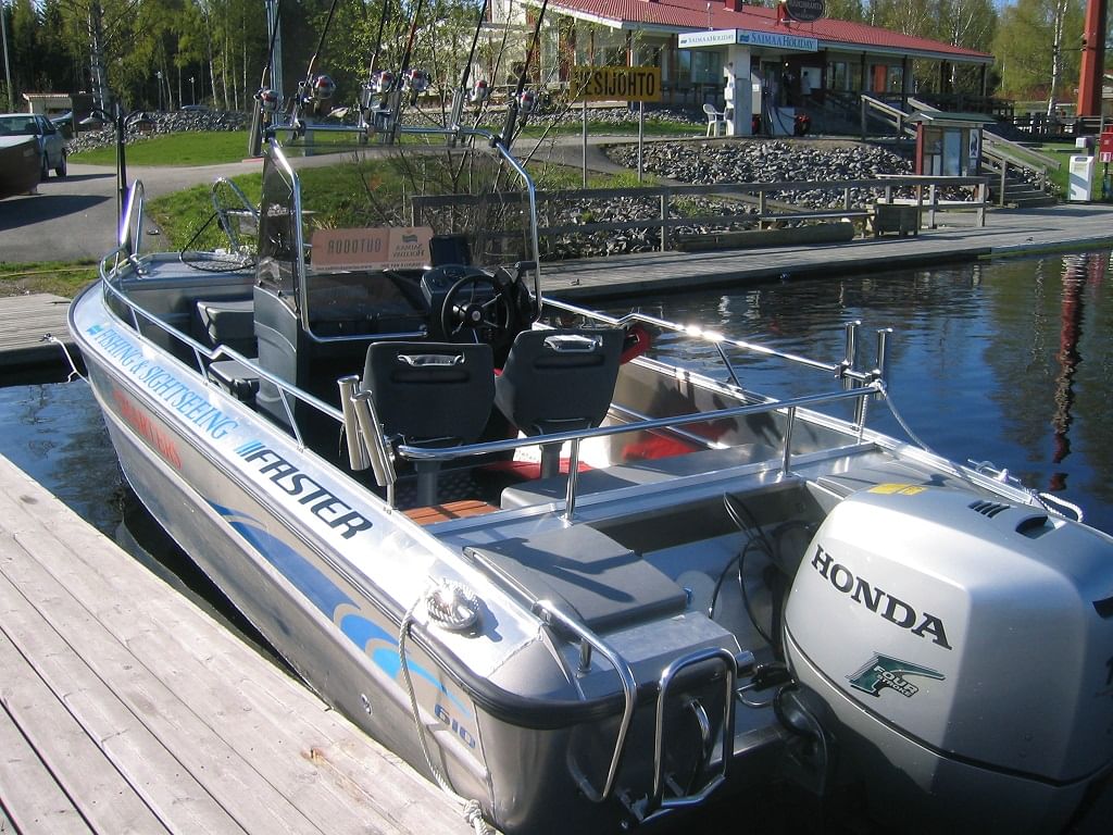 Fishing boat Faster with 150hp Honda. Boat is fully equipped for fishing. Life jackets and rain gear are always included (also winter suit if needed).