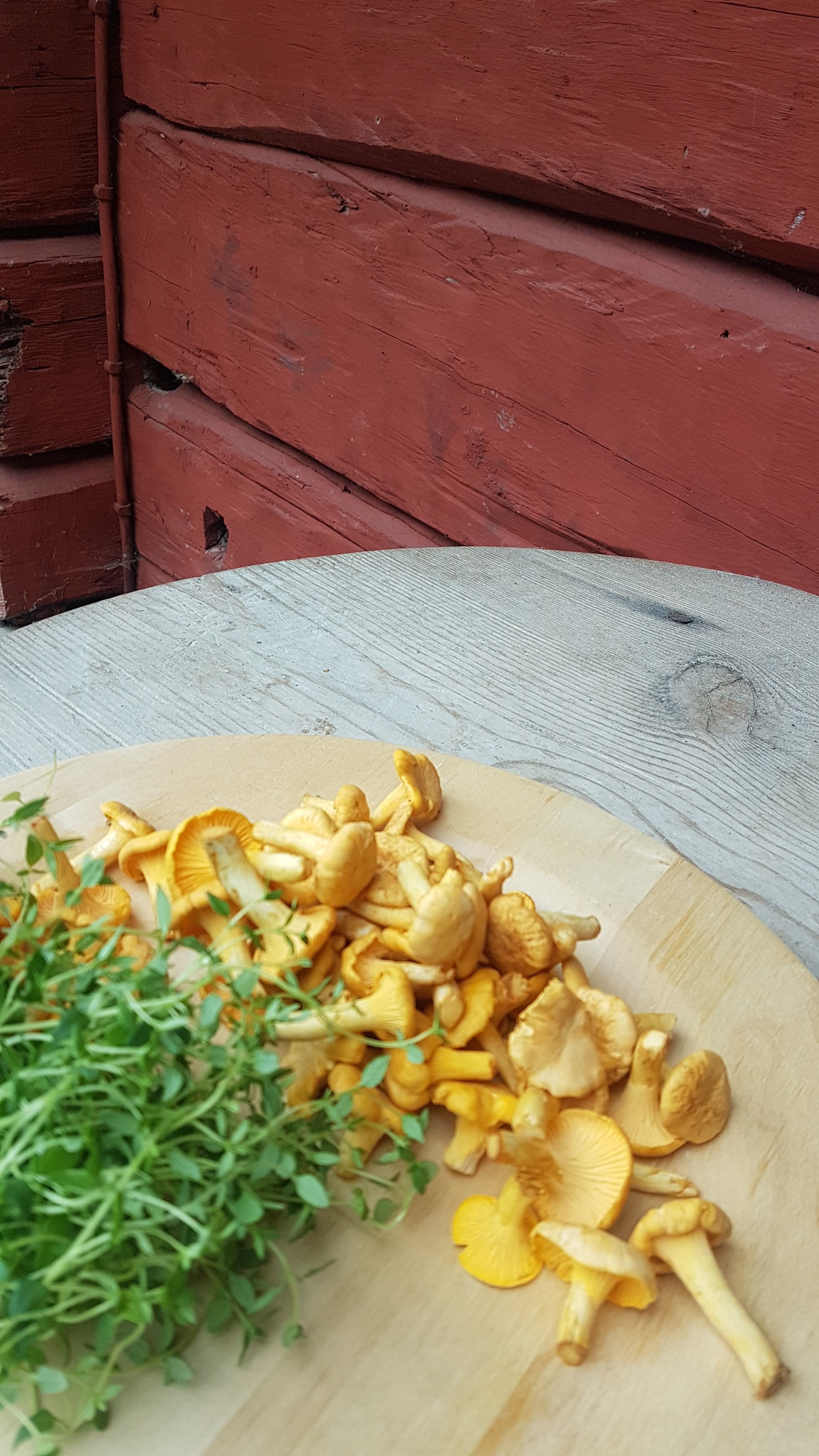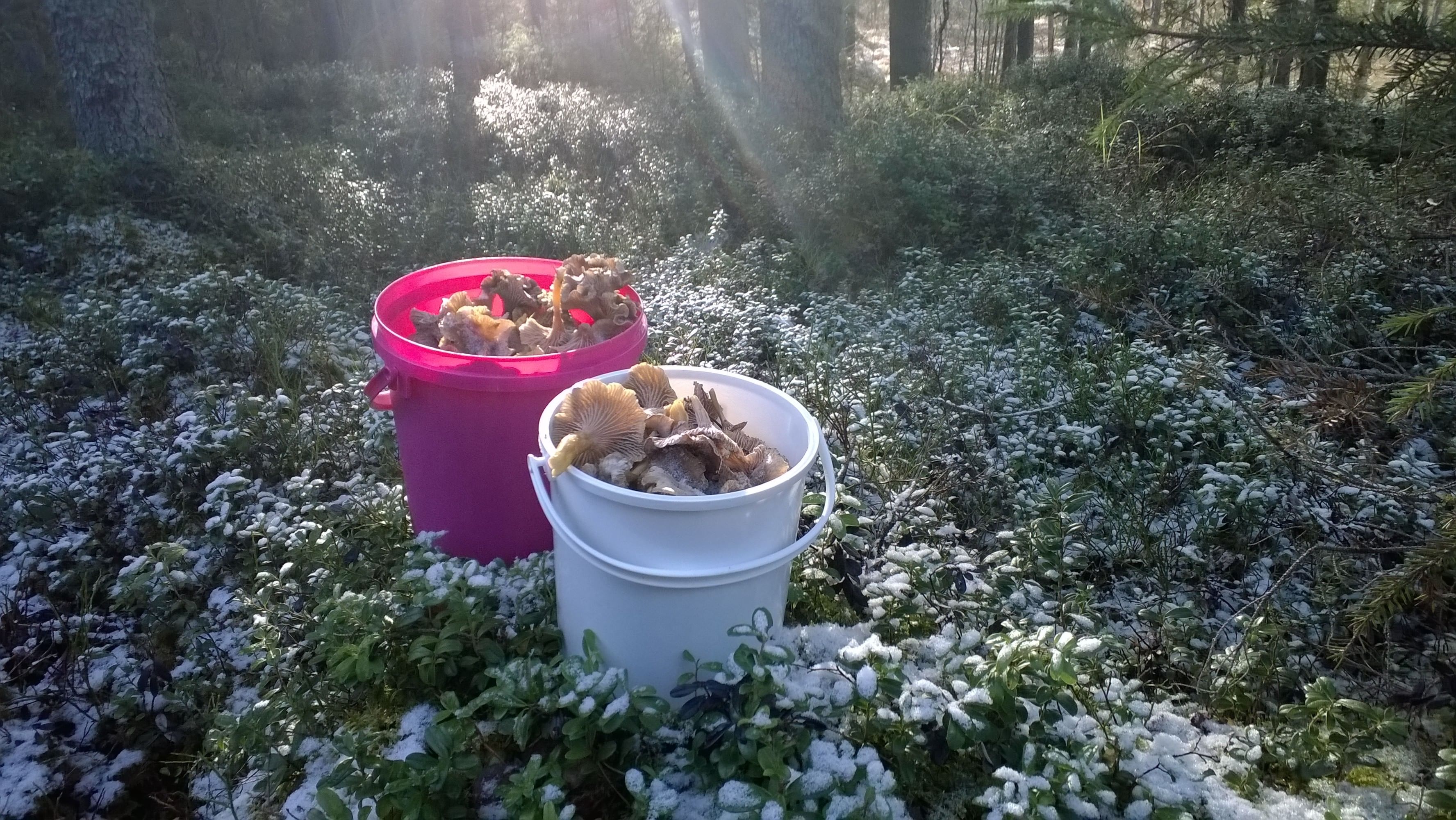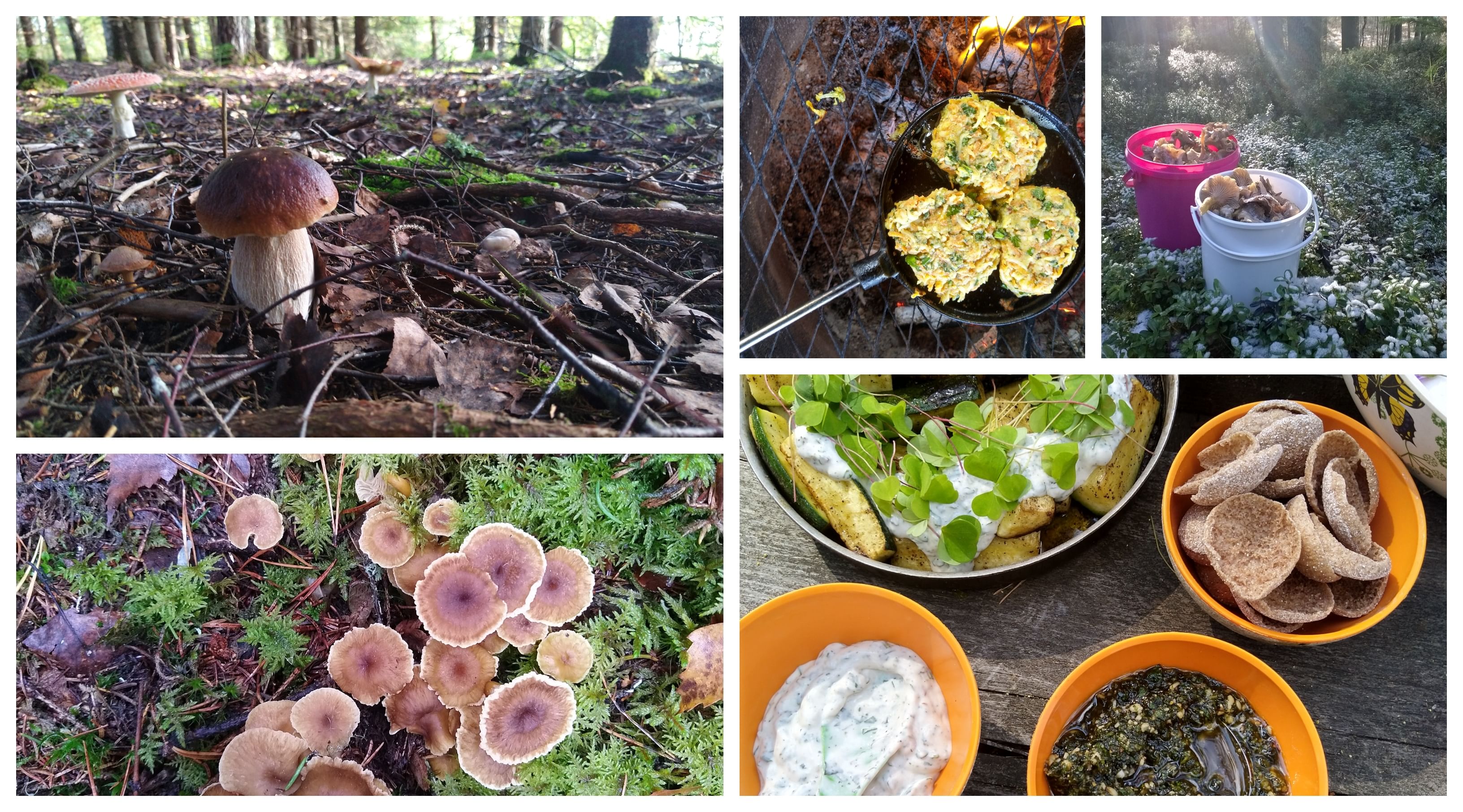 We walk in a near-by forest picking berries, mushrooms and herbs and prepare a meal together in the forest over a campfire in an outdoor cooking place.