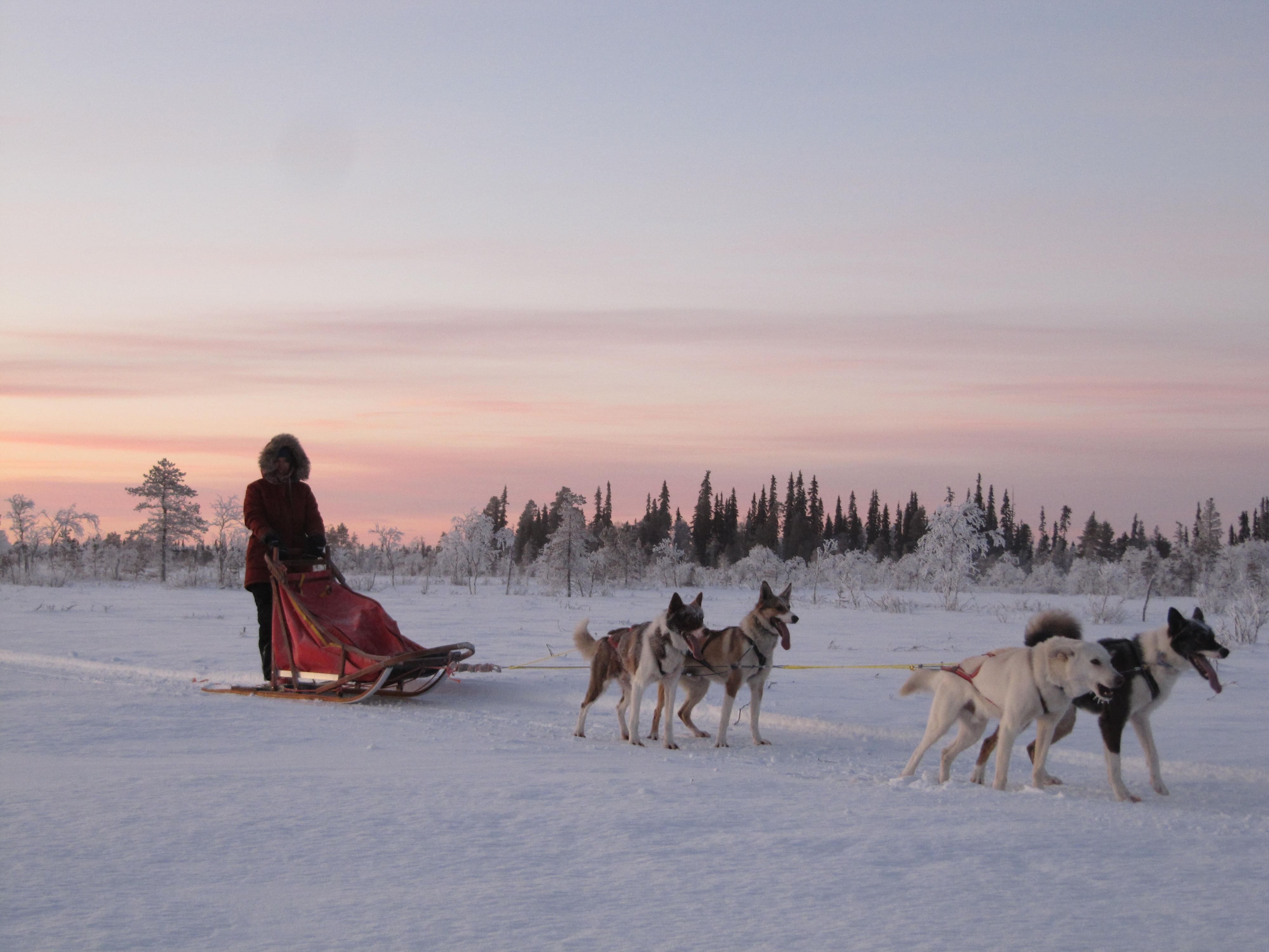 Husky Ranch Lapland is a small, family-owned husky farm specialized in unique husky adventures for small groups. At arrival to Husky Ranch Lapland, you will be greeted by your guide and the other owner of the ranch, Juho. First, you will get quality thermal clothing including parka jacket, pants, boots and mittens. After driving instructions you are ready to meet your team of well-trained Alaskan huskies! The trail heads first south of the Kurtakko village through the snowy forests and then you take a peek at Europe's biggest wetland Teuravuoma. Mushing a team of Alaskan huskies through the snowy landscape in the northern wilderness is an experience you will remember long