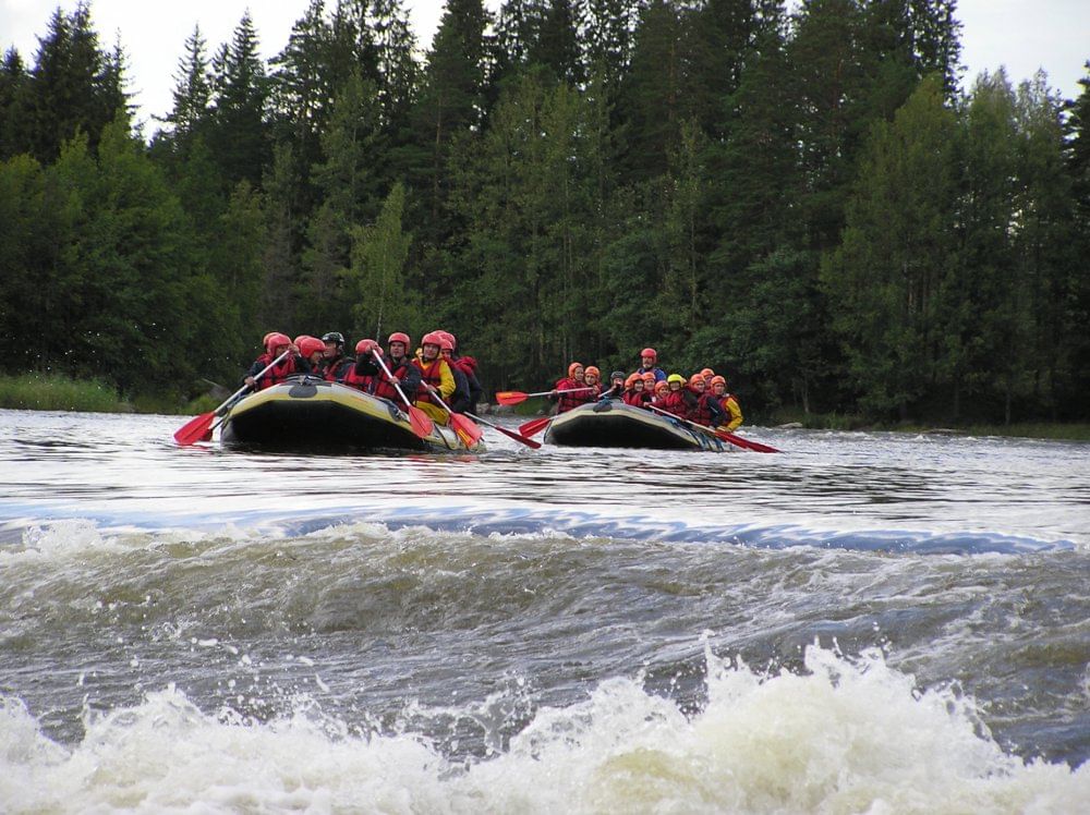 After getting the rafting gear you will be transported to the river. You will get safety instructions and you will learn to use the raft. Altogether you will be rafting five rapids before arriving in the Pernoonkoski pool and getting transported back to the starting point.