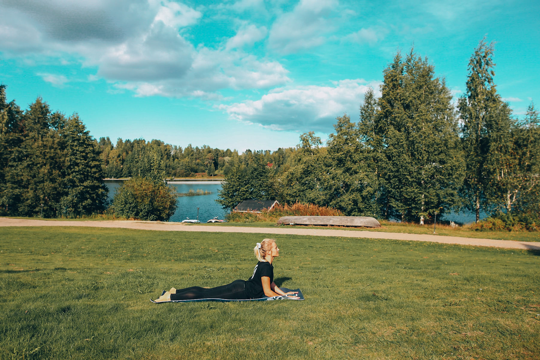 Yoga training outdoors in the middle of Finnish Nature in Varjola, close to Jyväskylä