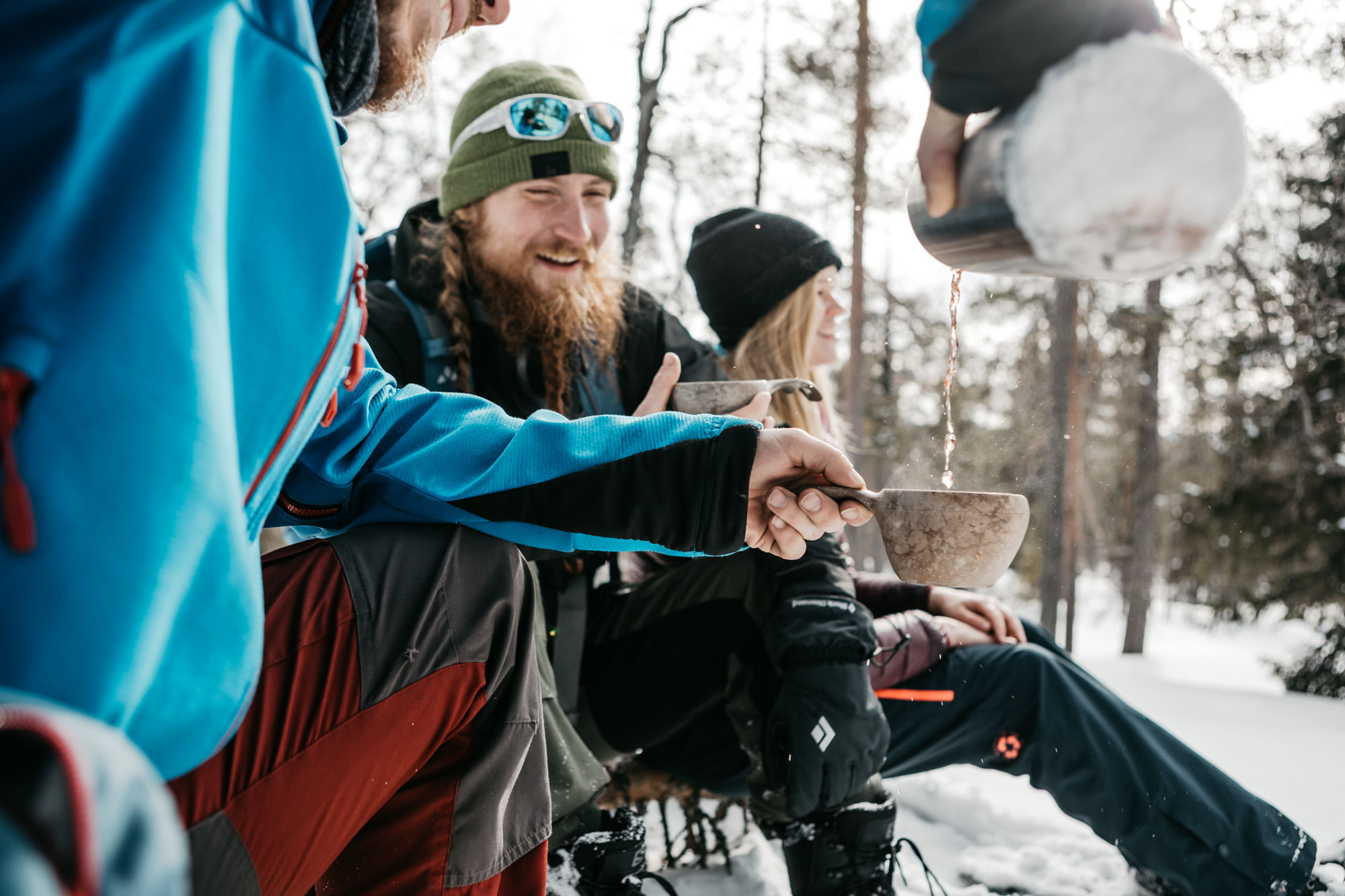 Challenge yourself on a snowshoe adventure through beautiful snowy landscapes! On this guided snowshoe hike, you'll experience the silence and grace of wintery Lappish forests. Along the way, your guide will tell stories about the people and way of life in Lapland. During the trip, you can enjoy a well-earned drink before returning to the Safari Club.