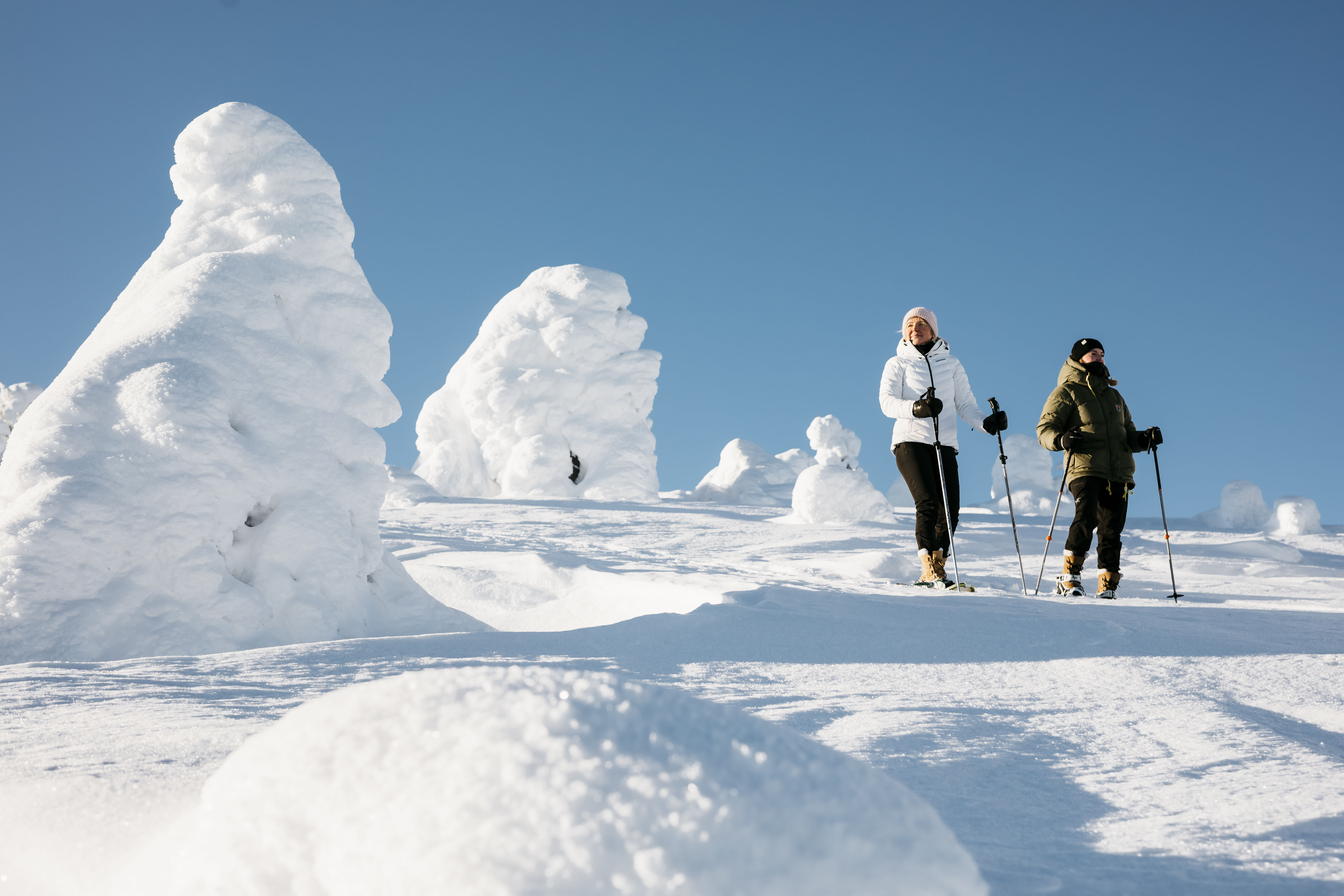 Experience the tranquility of Lappish nature on a snowshoe hike through the pristine, snow-covered forests of Levi with a guide.
