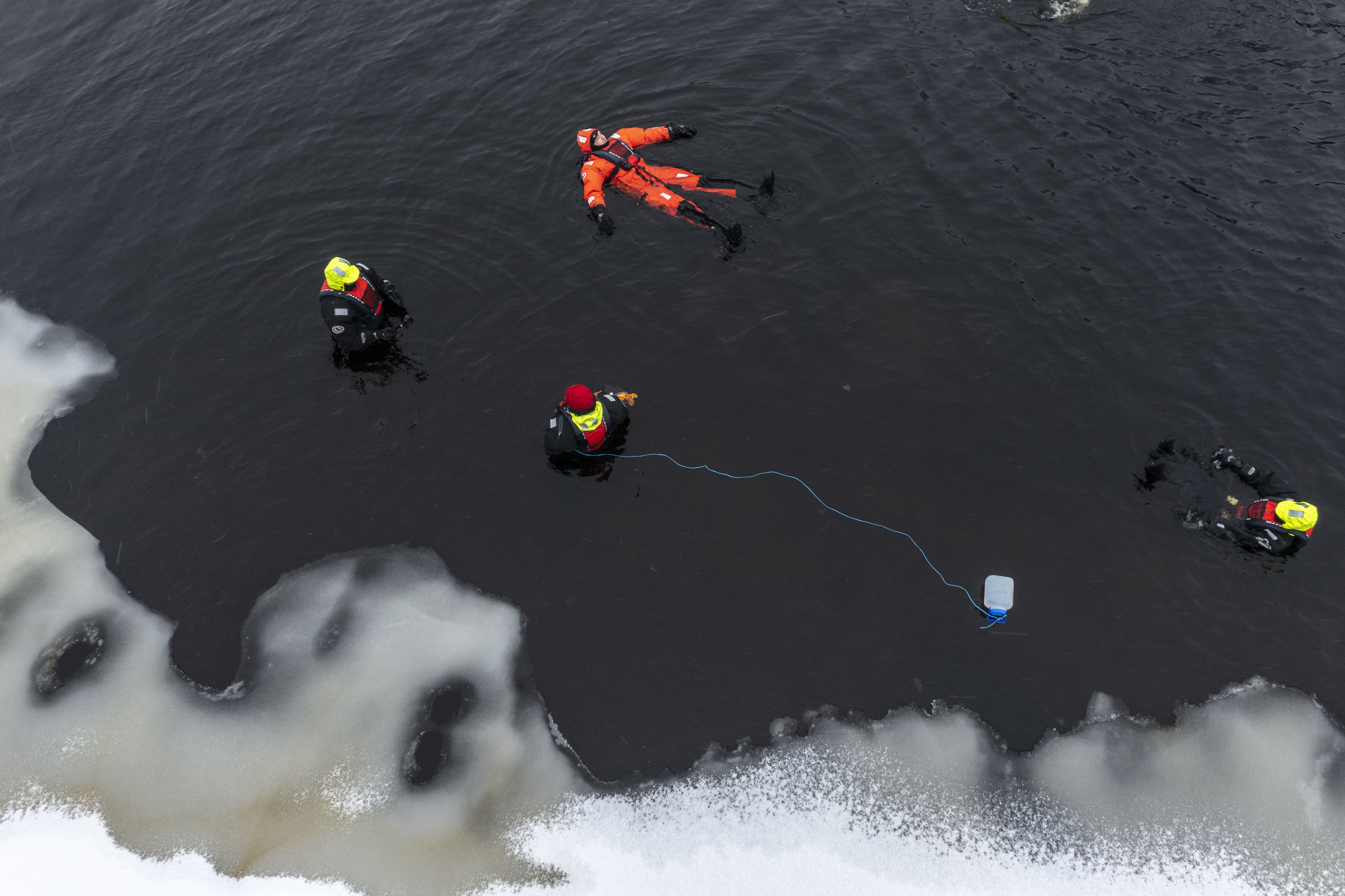 Ice-floating in drysuit in the Oravi channel, 1 hour