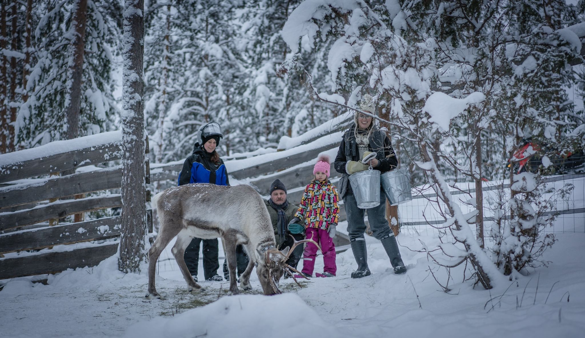 The price includes: Entrance to the private area, guidance, handmade souvenir, reindeer moss and a warm drink in the cafeteria. Children (ca 4-12 years old) can also try the mini snowmobiles.