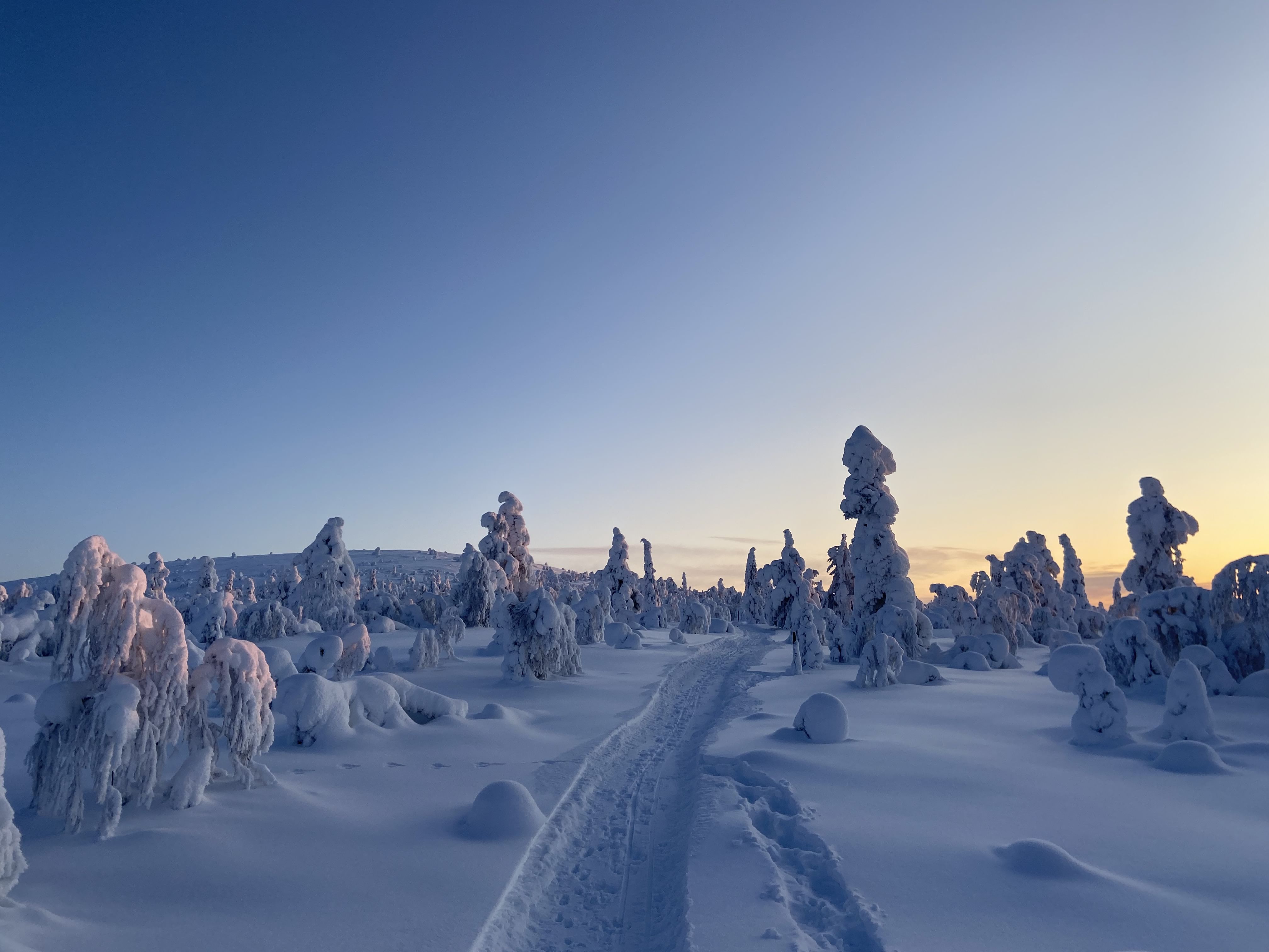 Snowshoeing or skin-based ski rental and with a map to the national park trails in Tankavaara