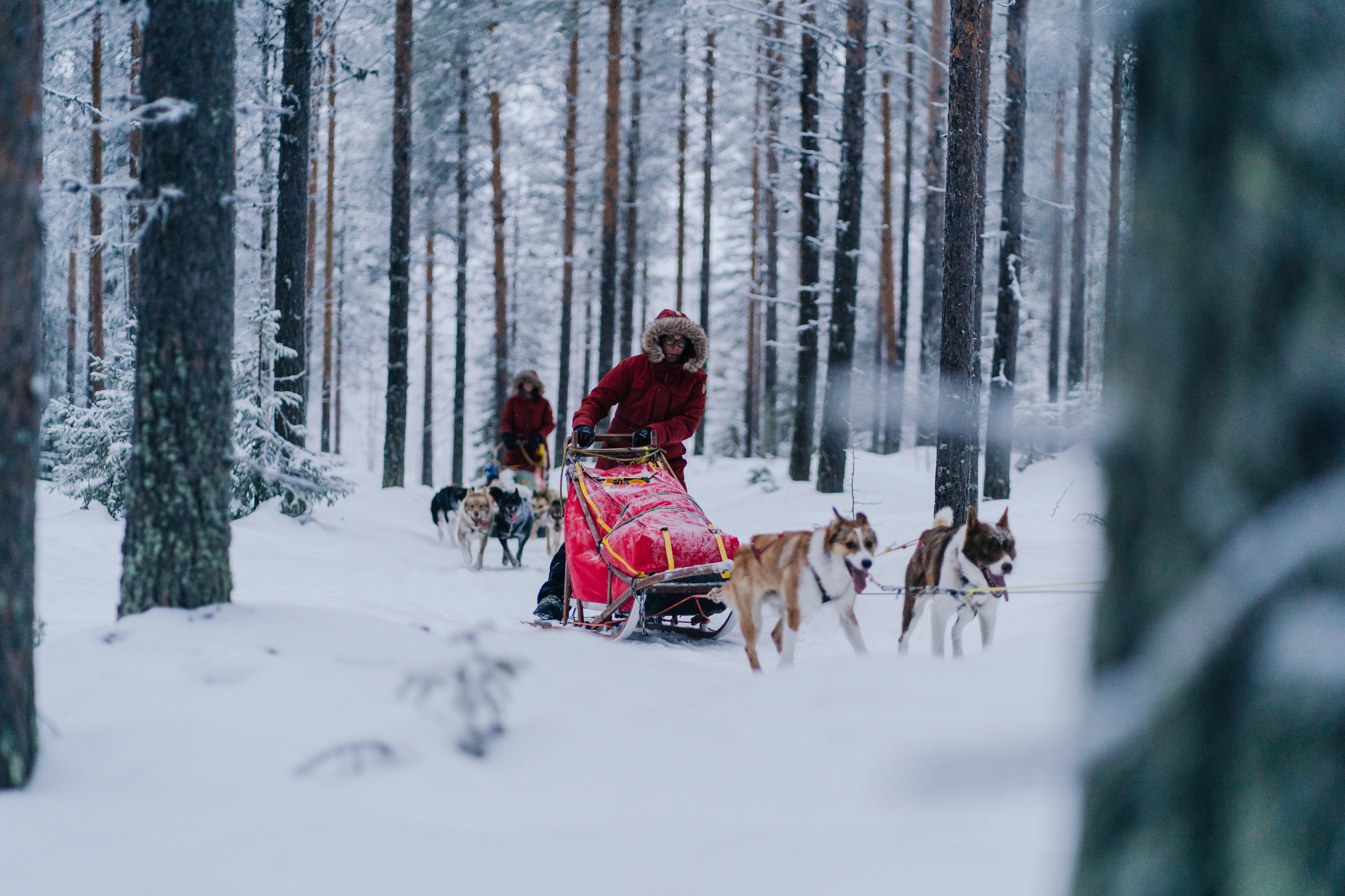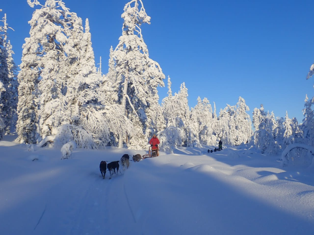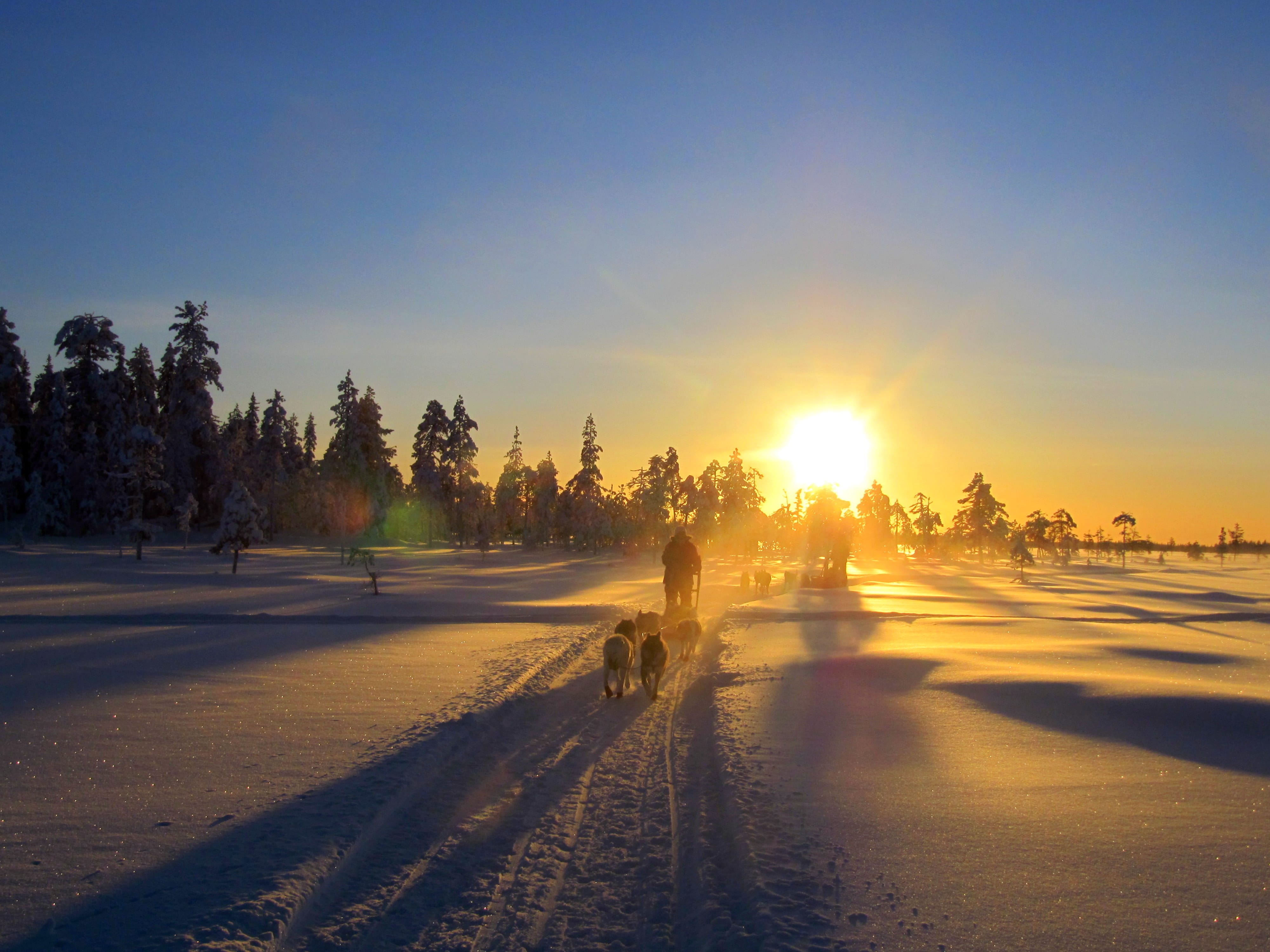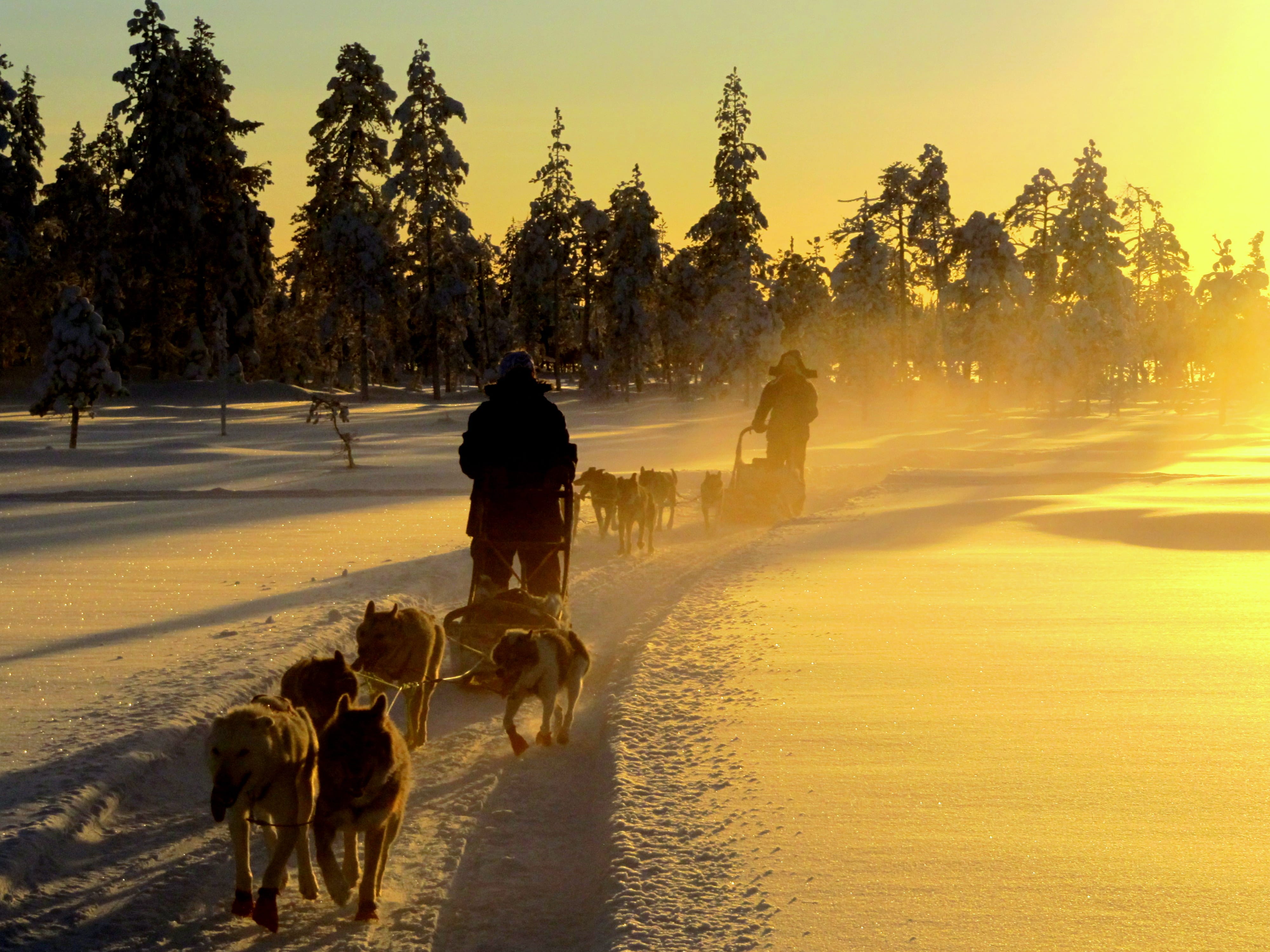 Husky Ranch Lapland is a small, family-owned husky farm specialized in unique, longer husky adventures for small groups of adults. After arrival at Husky Ranch Lapland, you will be greeted by your guide and the other owner of the ranch, Juho. First, you will get quality thermal clothing including parka jacket, pants, boots and mittens. After driving instructions you are ready to meet your personal team of well-trained Alaskan huskies! The trail heads first south of the Kurtakko village through the snowy forests and then you take a peek at Europe's biggest wetland Teuravuoma.