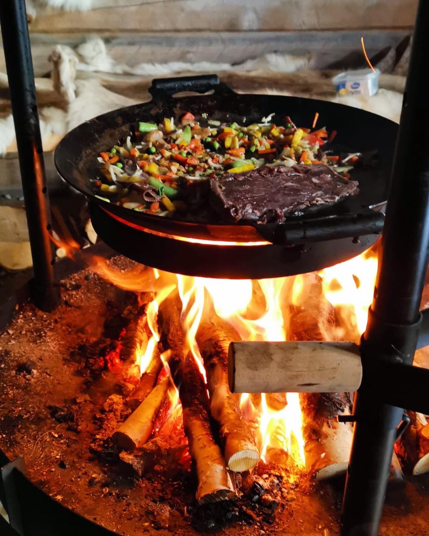 At the halfway point it's time to take a good break. The dogs get their halfway price first - frozen meat snacks! You will then be served delicious lunch by an open fire in our own wilderness hut!