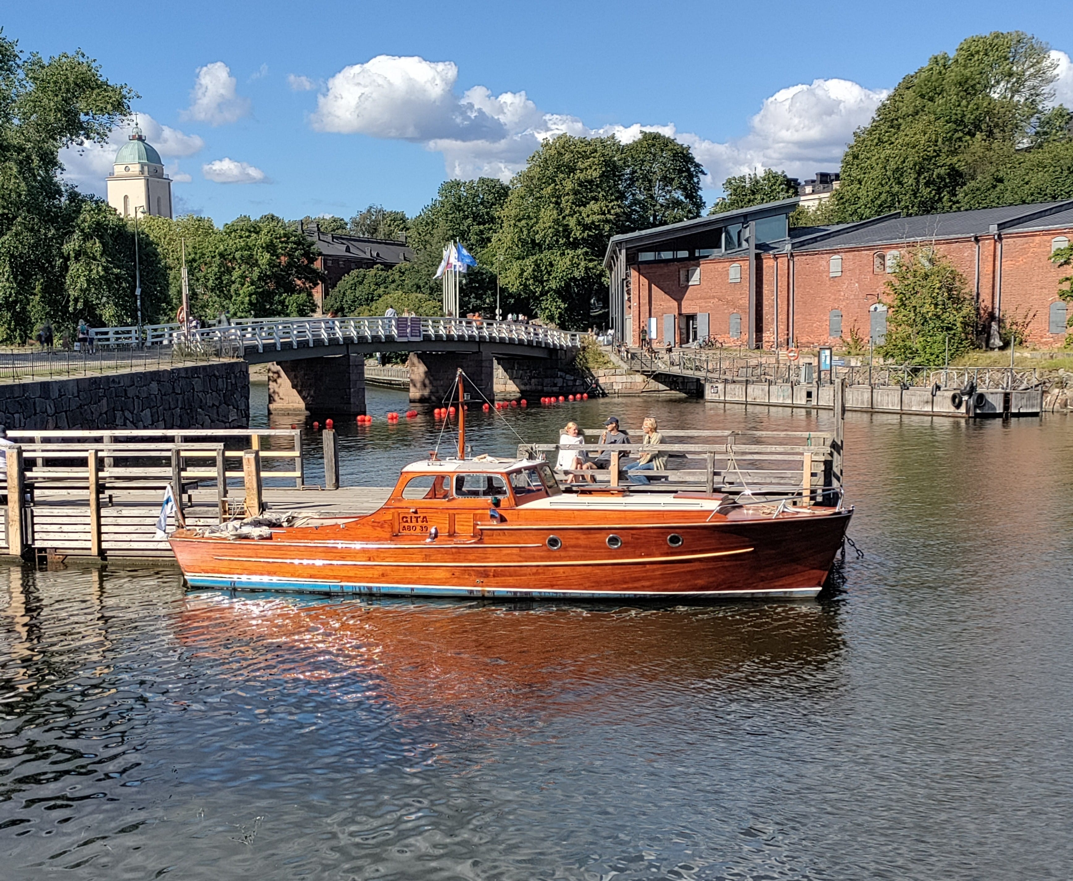 Gita is a masterpiece of the Finnish boat building craftmanship from 1929 worth experiencing. The boat is in perfect shape with all modern comfort (including a water closet in front). There is a stylish front saloon for 8 people and room for 9 in the back of the boat outdoors. it is possible to hood the back deck. The machinery has been renewed, the boat is smooth and reliable. With the new motor it is possible to drive even 15 knots/hour.