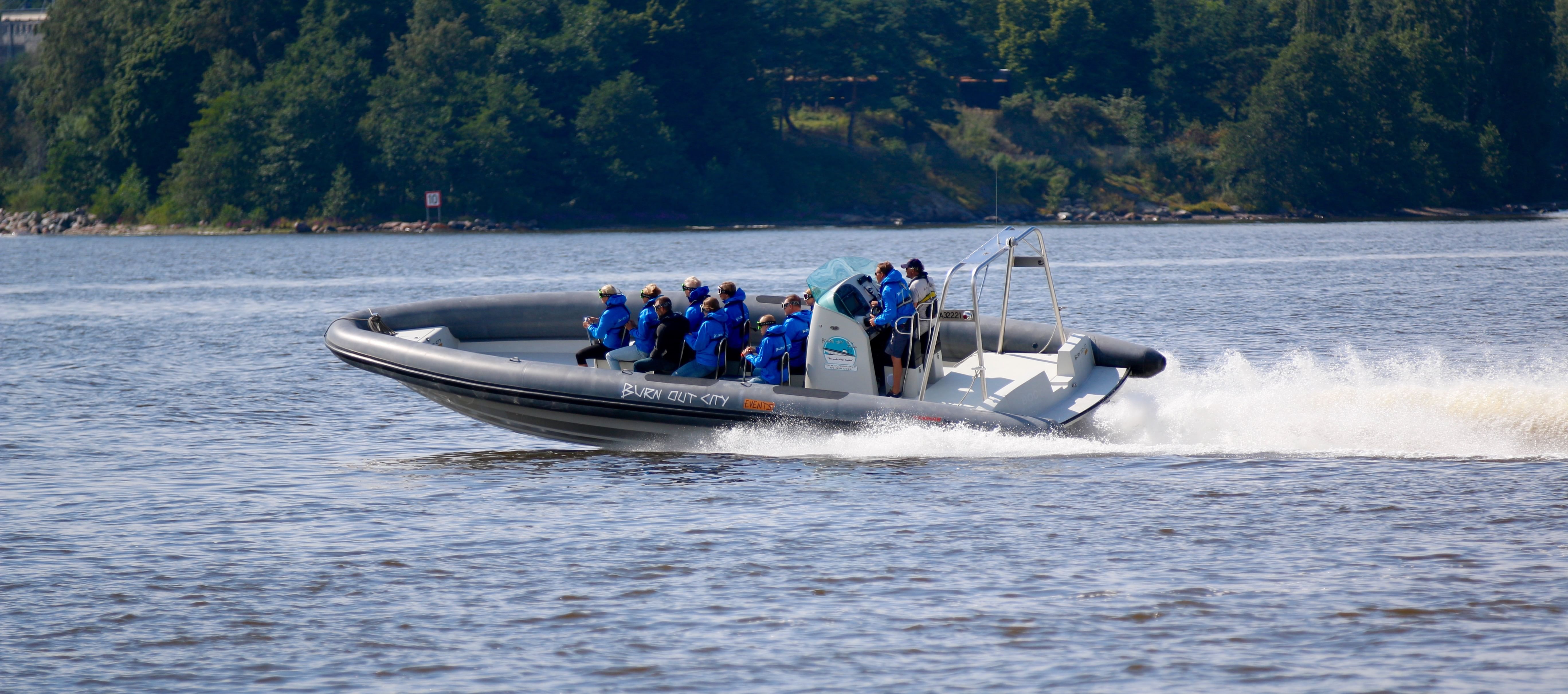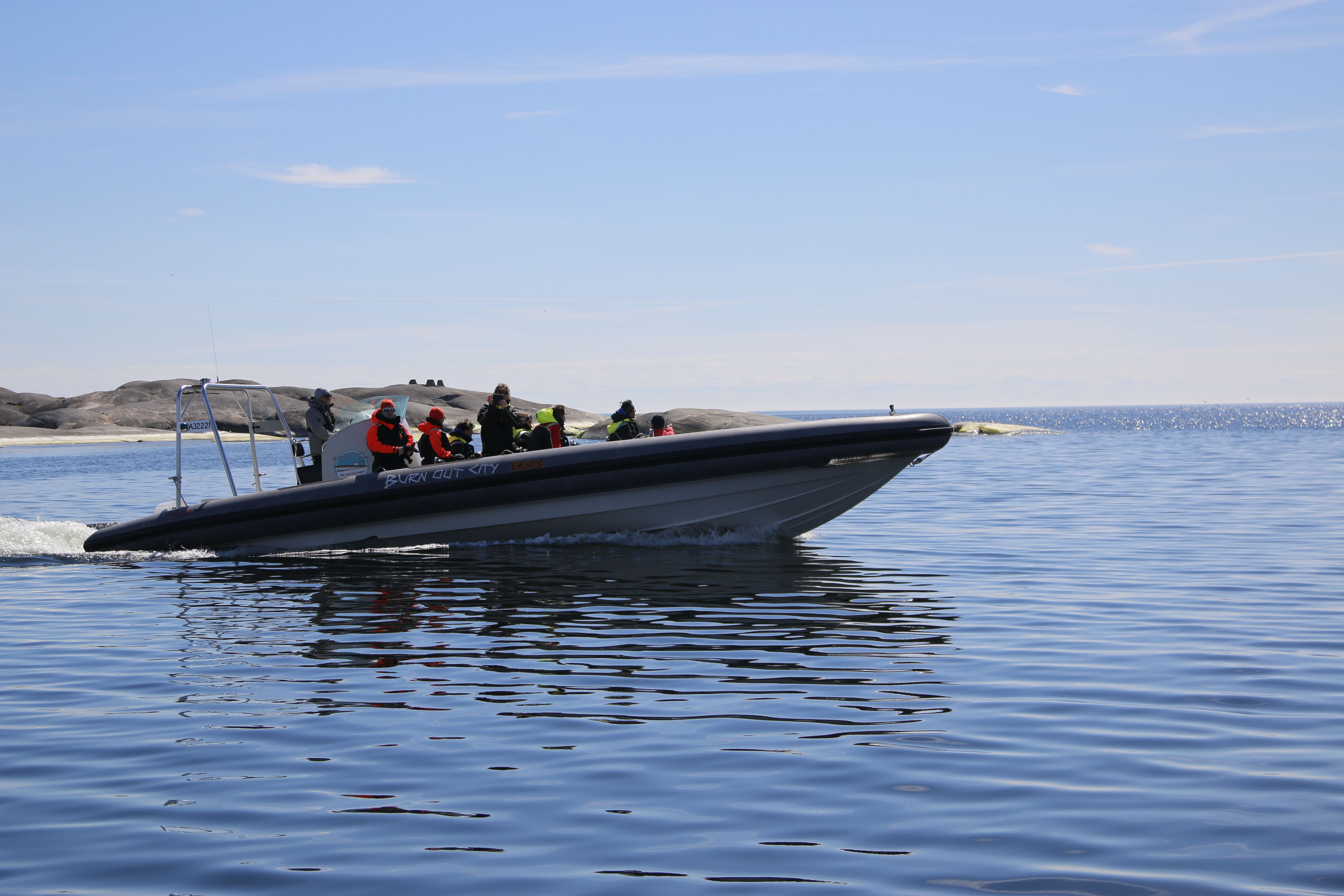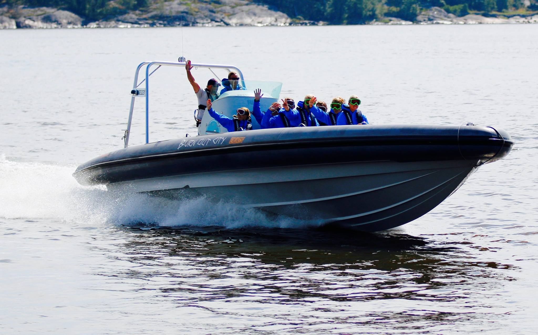 Kun pääsette syvempiin vesiin kauemmas rannasta, lisätään alukseen vauhtia. Pidä kiinni ja naui vauhdista. Kumivene liitää aalloilla jopa 50 solmun vauhtia. Matkalla pysähdytte jollain saarista pienelle välipalalle ja nautitte saaristomaisemista.
